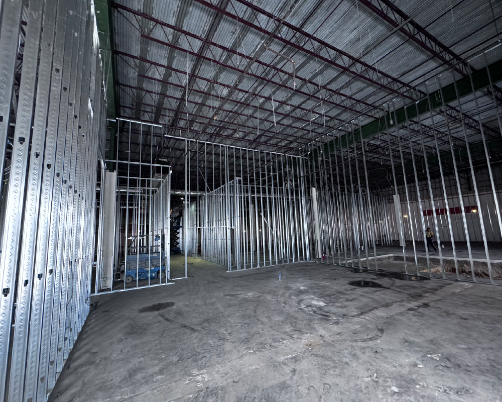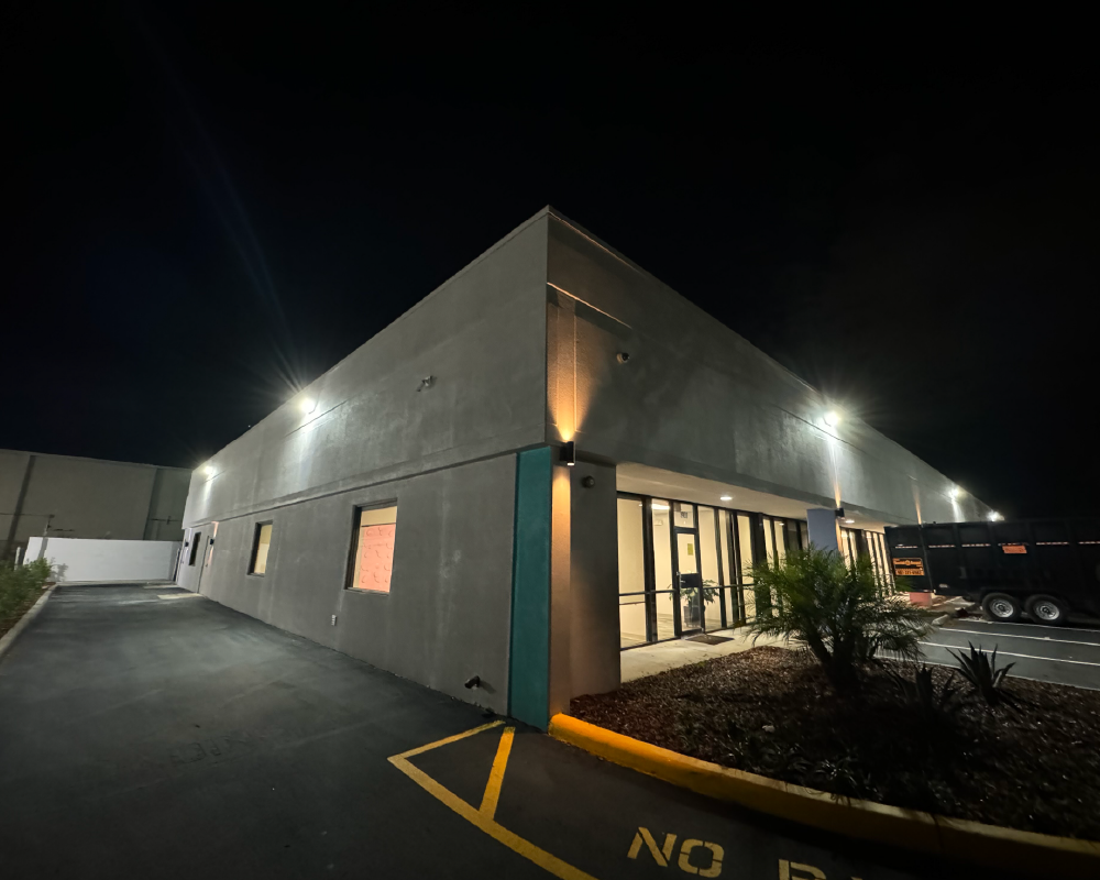 With over 27,000 sq. ft. of open structure and limited daylight, our team worked extended hours and used boom lifts and elevated platforms to safely complete overhead wiring, conduit installation, and light mounting — all while ensuring clear pathways for other ongoing trades.